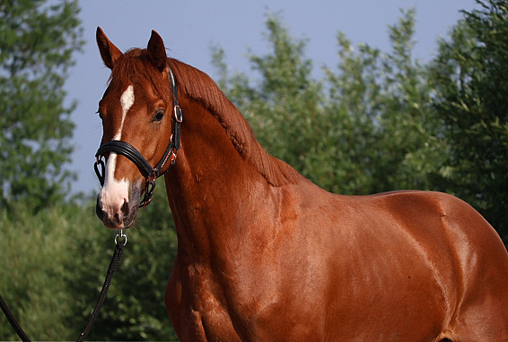 Hij heeft 3 correcte gangen waarin hij met veel souplesse en veerkracht beweegt. Hij heeft er plezier in en beweegt al heel sterk en met veel balans door de bak. Hij heeft nog geen hengstengedrag.