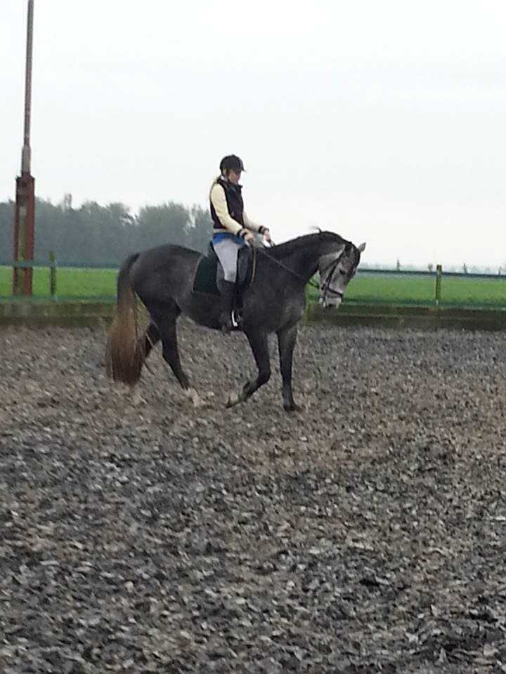 Ik vond hem op sporthorses en zag dat je een eigen site had en toen zijn we de paarden die je op dat moment had bekeken en zijn we langs gegaan. Hij is super braaf en eerlijk maar heeft wel iemand nodig die duidelijk en dominant is. Anders neemt hij de leiding over. Hij is eenkennig en super gevoelig en erg gericht op me. Hij vertrouwt me blindelings, ik kan van alles bij hem doen. Ik doe alleen dressuur met hem, ga toevallig morgen springen want ik moet maandag een stukje dressuur en springen laten zien voor een school om aangenomen te worden(ik ga een paardensportopleiding doen) en hij gaat dan mee. Buitenritten doe ik nu niet omdat we aan een drukke weg zitten en ik geen fijne ervaring met de autobestuurders heb, maar als we straks voor de opleiding naar ermelo verhuist zijn wil ik wel een paar keer in de maand bosritjes gaan rijden met hem.
