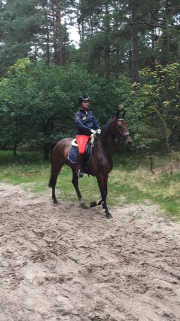 Hoi Aniek, Een aantal maanden geleden een 4 jarige Andretti merrie bij Aniek gekocht. Een paard kopen bij de Jong Horses kan ik iedereen aanraden, hartelijk ontvangen, goede service maar bovenal de eerlijkheid! Zowel naar de klanten toe als de paarden die op stal staan. Ik heb een heel fijn en eerlijk paard gekocht die zich steeds meer aan het ontwikkelen is. We hebben ondertussen onze eerste oefendressuur wedstrijd gereden en dat ging super! Hoewel alles nieuw was, was ze daar niet heel erg van onder de indruk en liep mooi haar proefje. Nu nog even flink oefenen en dan in de winter voor het ‘echie’ en met afwisselend met een buitenritje moet dat helemaal goed komen. Groetjes, Bente