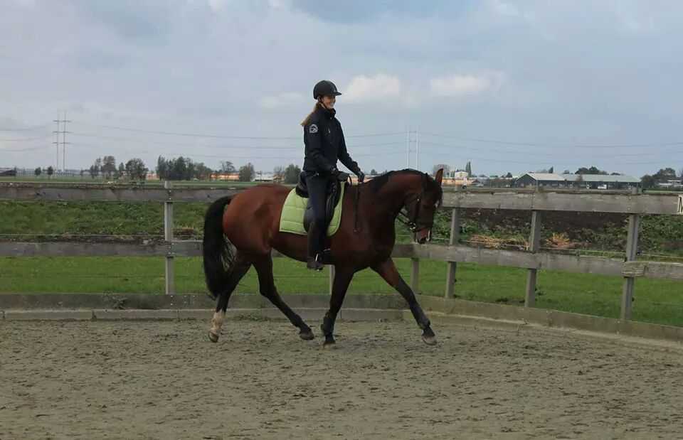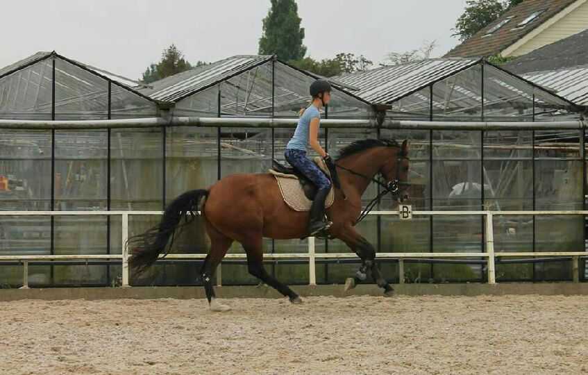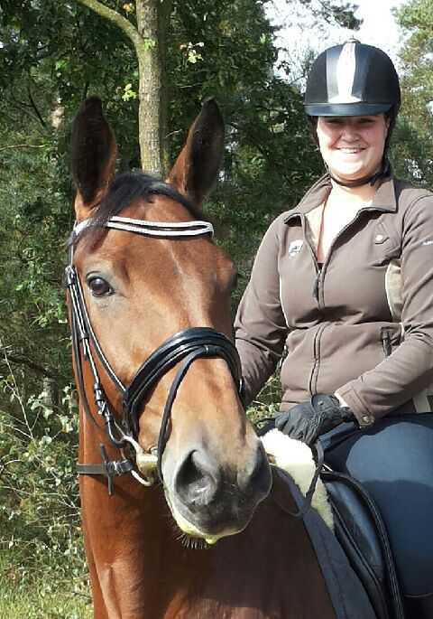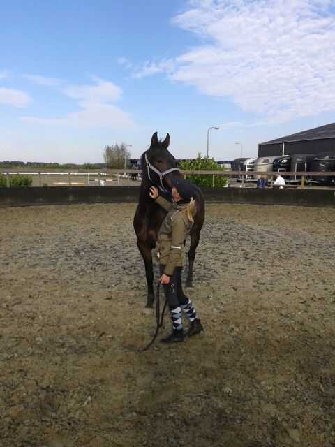 Na lang zoeken, vele paarden uit te hebben geprobeerd en heel Nederland te hebben gehad, kwamen we terecht via een advertentie op sporthorses bij Aniek de Jong. Het paard waar Aniek mee adverteerde op sporthorses was niet het paard wat we zochten maar zo kwamen we wel bij haar op de site terecht. Op die site stond ook geadverteerd: een 8 jarige merrie Riverman x Grand Cru. We hebben contact opgenomen met Aniek en hadden een vriendelijke heldere stem aan de lijn die onsmeteen heel erg aan stond. We mochten vrijblijvend langskomen en Aniek dacht met ons mee omdat we toch op zoek waren naar een braaf allround paard. We zijn haar uit gaan proberen en de merrie stond ons direct erg aan, ook de begeleiding van Aniek toen ik op het paard zat was erg fijn. Ze liep met ons mee en legde al lopende uit hoe de merrie in elkaar zat. Aniek had ook nog een 4 jarige staan waarvan ze dacht dat die ons ook wel zou passen. Ook deze hebben we uitgeprobeerd, net zo braaf als de andere en voor een 4 jarige al goed aan de hulpen en ver in zijn opleiding. De dag erna zijn we terug gegaan om Bellevottie (Riverman x Grand Cru) nogmaals te rijden. Ook nu had Aniek alle tijd voor ons wat we als zeer prettig ervaren hebben. Bellevottie beviel ons erg goed en paste goed in het plaatje, braaf, nuchter en allround. Geen woord over gelogen door Aniek over de telefoon. We wilde graag dat Bellevottie gekeurd zou worden en ook dit was geen enkel probleem. Na het weekend hebben we haar opgehaald en is ze bij ons op stal gekomen, net zo nuchter en braaf als bij Aniek. We besloten haar ’s avond me te nemen naar de rijvereniging. Een niet zo goede doordachte keuze en misschien iets te snel. Bellevottie was ook daar super braaf maar vond het toch wel een beetje spannend. De combinatie van verschillende nieuwe dingen en toch spanning zorgde er voor dat het niet helemaal lekker liep. We hebben de zelfde avond nog gebeld en Aniek bood spontaan aan om de volgende dag meteen langs te komen. De weken daarna is Aniek nog verschillende keren geweest om mee te helpen. Een super service waar wij heel erg blij mee zijn, wisseling van bit deed wonderen en we zijn heel erg blij met Bellevottie maar natuurlijk ook met Aniek!